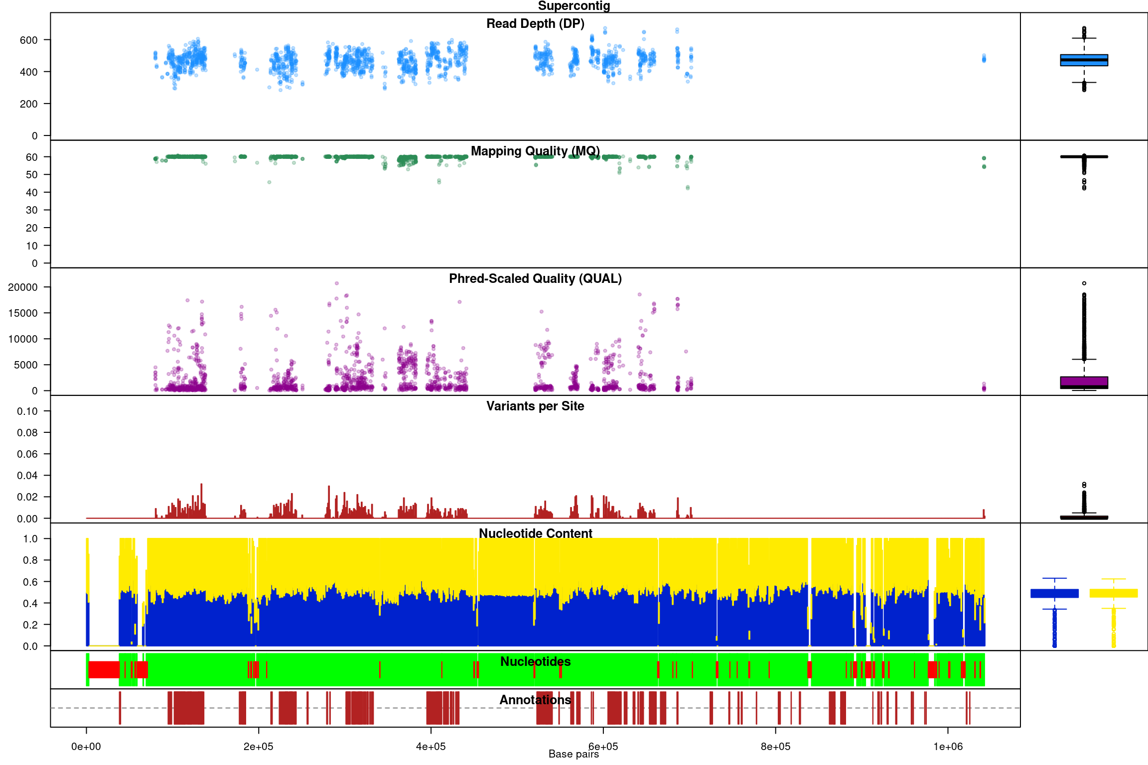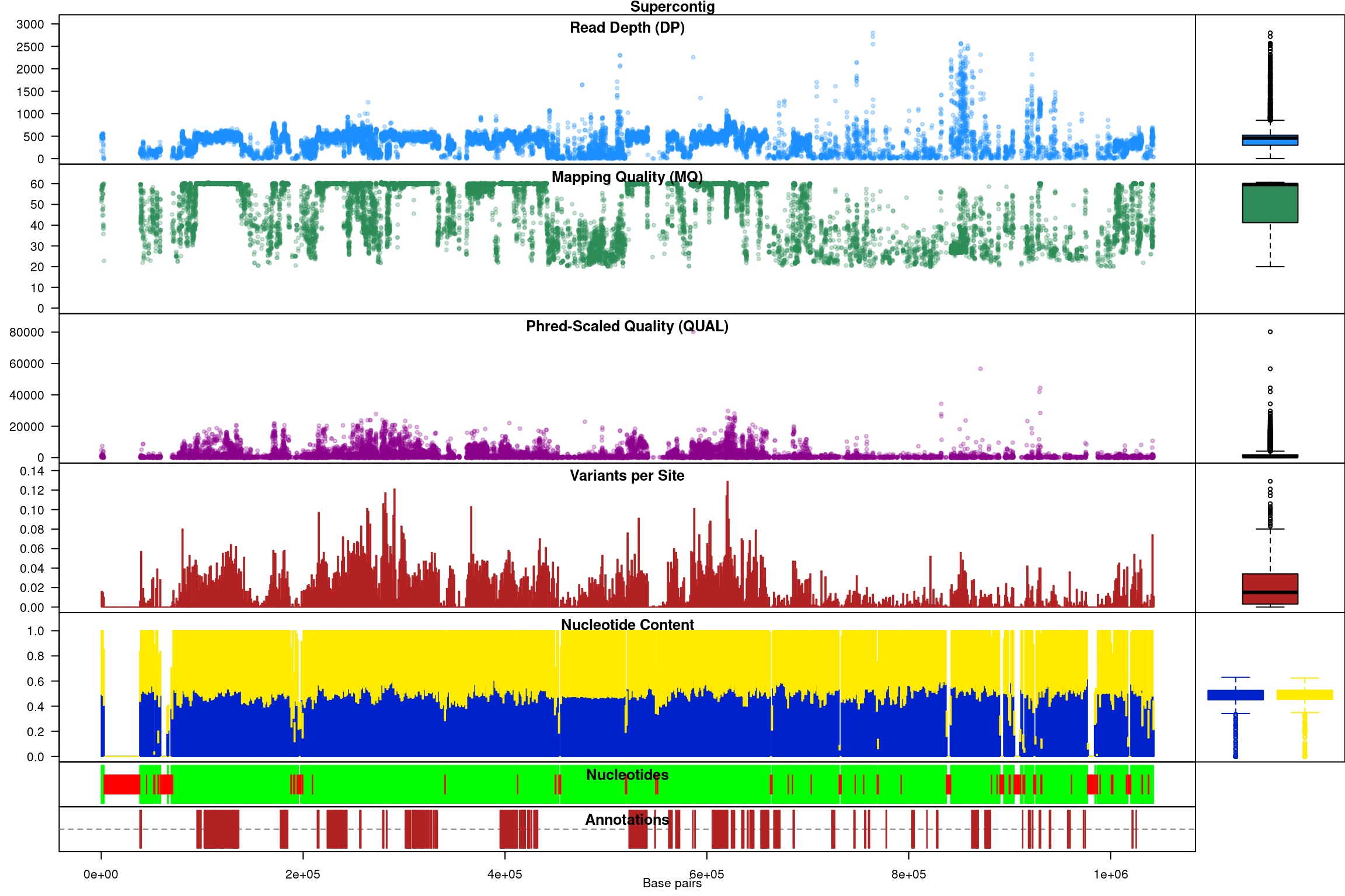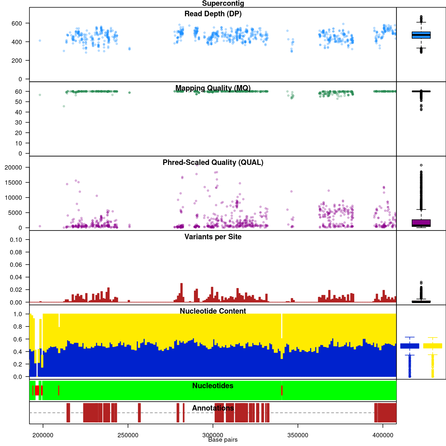 ## Warning in create.chromR(name = "Supercontig", vcf = vcf, seq = dna, ann = gff, :
