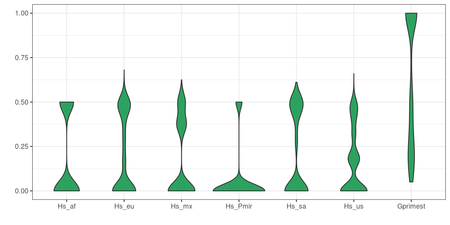 knitr::kable(head(myDiff[,1:15]))| CHROM | POS | Hs_af | Hs_eu | Hs_mx | Hs_Pmir | Hs_sa | Hs_us | Ht | n_af | n_eu | n_mx | n_Pmir | n_sa | n_us |