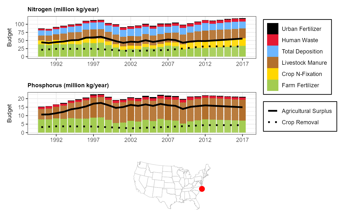 #> 6 Atmos. Deposition -31.7 NALocal catchment and watershed N and P inputs to the Platte River Basin