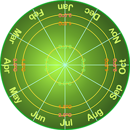 Spiral - Each 'loop' of the spiral represents a year so in that sense, it is similar to the Rings - the difference is that the value for January in a given year smoothly follows the one for December in the previous year - just like the real world - as opposed to a sudden change for the Rings.